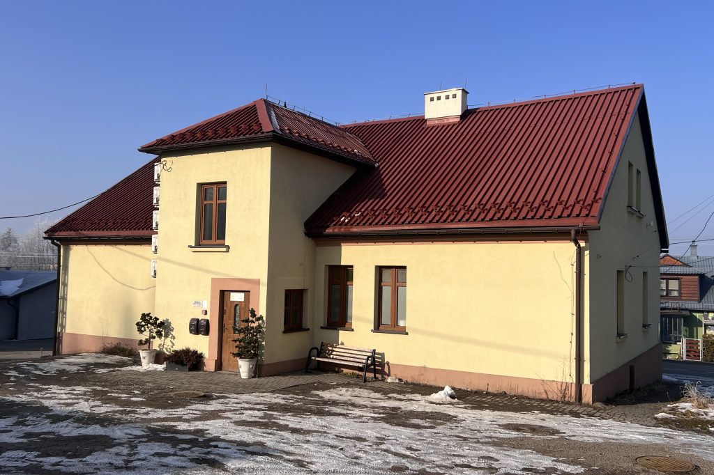 Parterowy, podpiwniczony budynek (według dawnej numeracji nr 390) został wybudowany ok. 1860 r. tuż przy drodze w kierunku Białej. Budowniczym był żydowski kupiec Borger, który prowadził w nim okresowo stołówkę oraz wyszynk wódek i piwa. Pod koniec XIX w. obiekt przeszedł na własność gminy Kozy i pełnił funkcję Urzędu Gminy. Od 1913 r. – do czasu wybudowania nowego gmachu szkolnego w 1937 r. – mieściły się tu sale lekcyjne miejscowej szkoły podstawowej. W suterenie znajdowało się mieszkanie dozorcy.