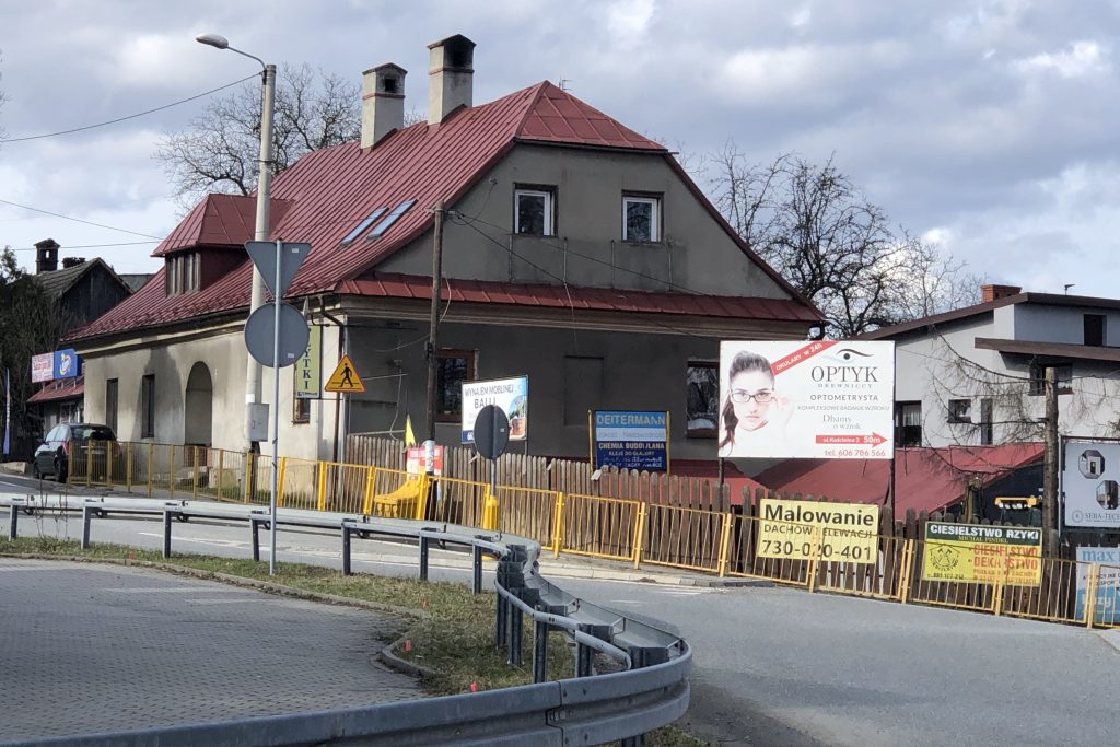 Równie istotna jak sama architektura jest zmiana jego otoczenia. Budynek z przestrzeni wiejskiej stał się elementem zabudowy przy ruchliwej drodze. Asfalt, barierki, latarnie zmieniły jego skalę i percepcję. Dawniej był dominantą w krajobrazie, dziś jest jednym z elementów ciągu komunikacyjnego.