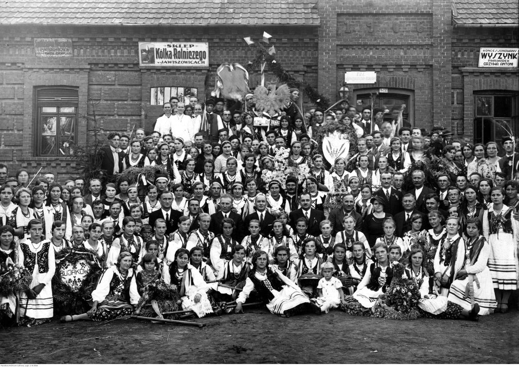 Fotografia grupowa uczestników dożynek w Jawiszowicach w 1935 r.