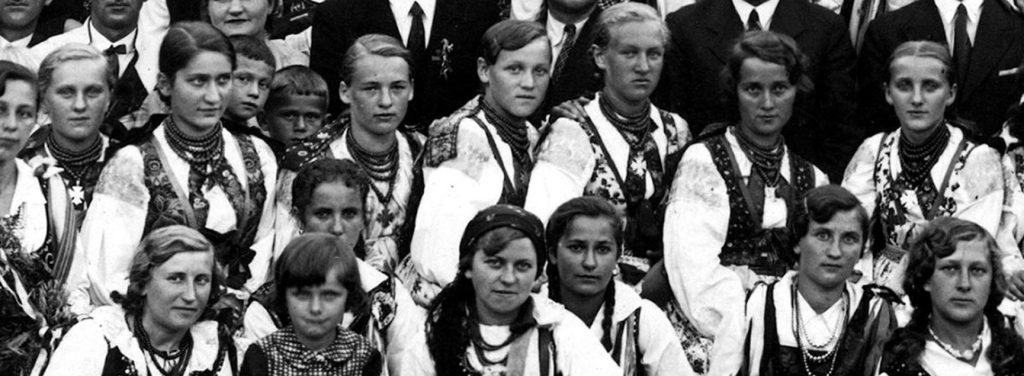 Dożynki w Jawiszowicach, 1935 r. Fragment z grupą dziewcząt z Wilamowic (1)
