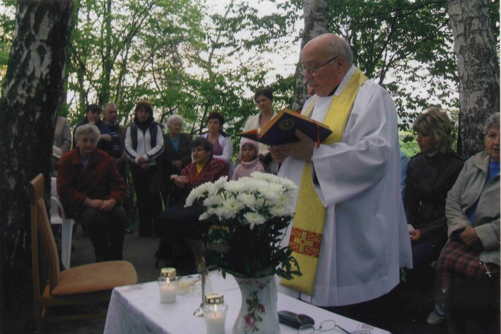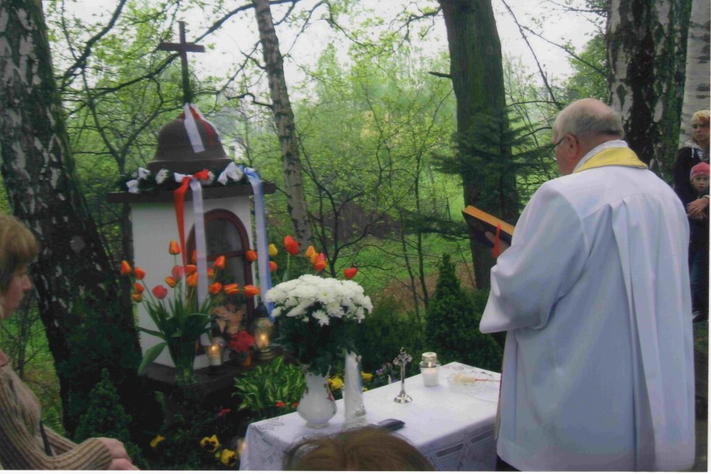 1 maja 2010 r. kapliczkę poświęcił ówczesny proboszcz parafii św. Szymona i Judy Tadeusza w Kozach, ks. Emil Dyrda (fotografie z uroczystości z archiwum rodzinnego Krzysztofa Laszczaka).