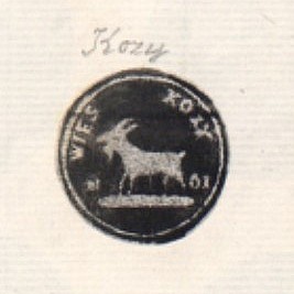 Opis pola pieczęci: stojąca koza (kozioł) zwrócona w prawą stronę (dla patrzącego na pieczęć jest to lewa strona, co jest zgodne z praktyką heraldyczną; por. godło Polski),