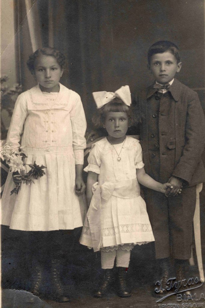 Trójka dzieci z Kóz. Od lewej: Anna Zontek, Tekla Polak, Władysław Polak.